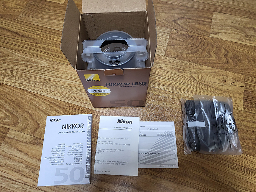니콘 slr, dslr용 단렌즈 50.8g를 구매했습니다. 정가는 267,000원이나 중고로 10만원 초반대로 쉽게 구할 수 있습니다.