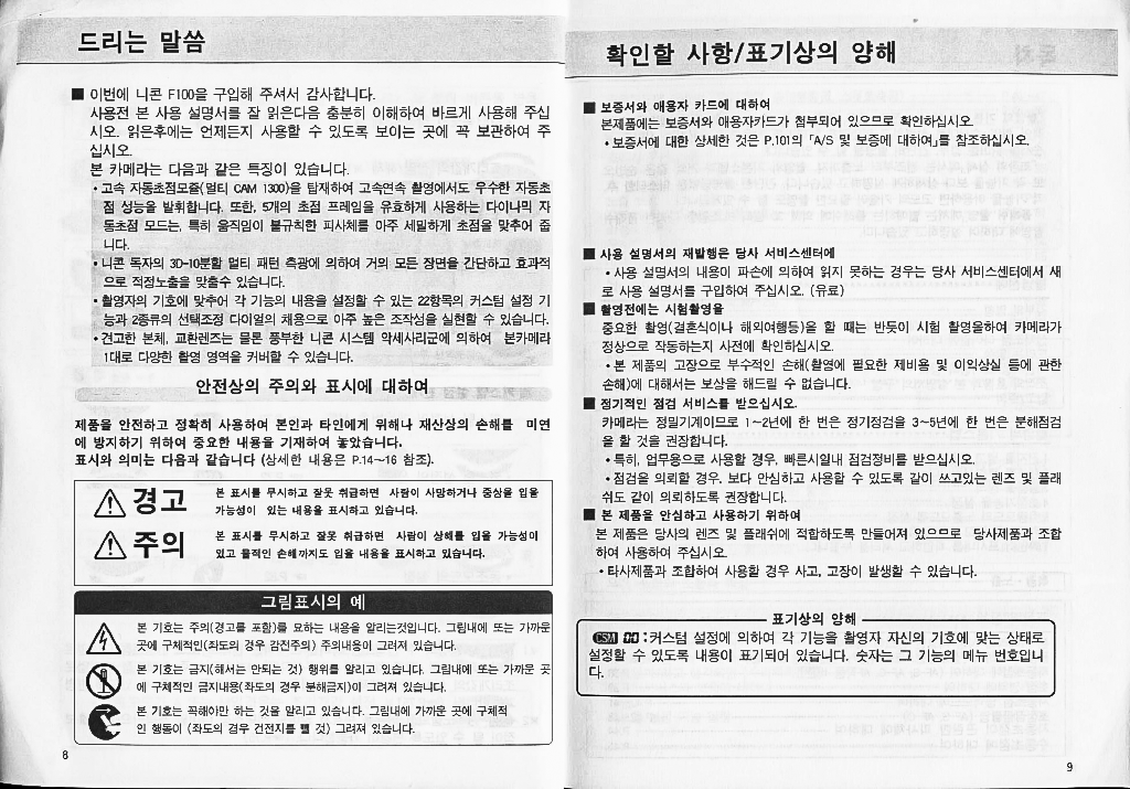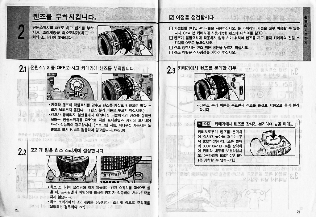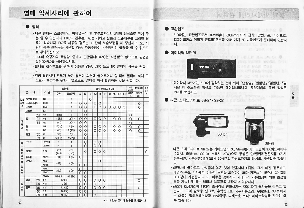 일상 이야기/하루하루 일기장 니콘 F100 한글 설명서 센츄리 2022. 1. 19. 니콘 필름 카메라 f100의 한글 매뉴얼입니다. 반응형 공유하기 게시글 관리 빌더스하이 저작자표시 비영리 변경금지 (새창열림) 공유하기 이웃 맺기 '일상 이야기/하루하루 일기장' 관련 글 더보기 QCY HT01 한글 사용법 설명서 QCY T12 한글 사용법 설명서 QCY T11S 한글 사용법 설명서 QCY T10 한글 사용법 설명서 댓글